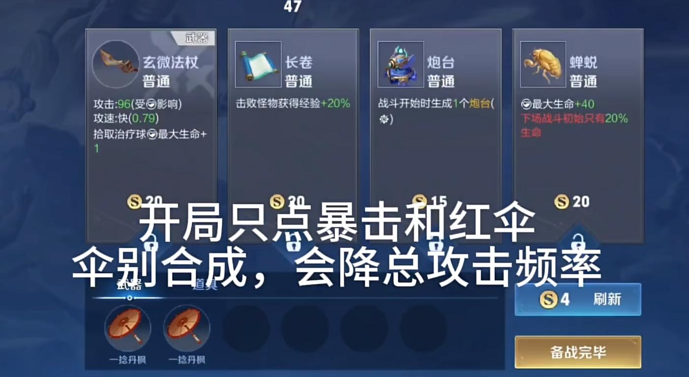 选择红伞的主要原因是因为这把武器攻击频率高,而且灵巧。攻击时,暴击有几率掉落金币。接下来就是积累暴击率,最大化英雄的暴击率。