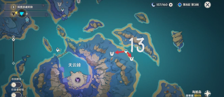 3、元宵宫区域第3点(10只动物):传送到“八曲岩之地”锚点,沿着地面路径前进。