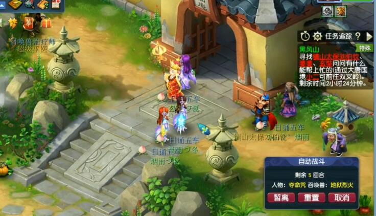 1.进入副本后,玩家会找到太保和婆婆各完成5个小任务,然后找到玄奘抄写佛经5次。复制后不要点击开始。这里要求同事控制5个号码,相当麻烦。等到你处于合适的位置后再点击开始;