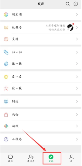 第一步:打开微信进入首页,进入底部的【发现】区域;