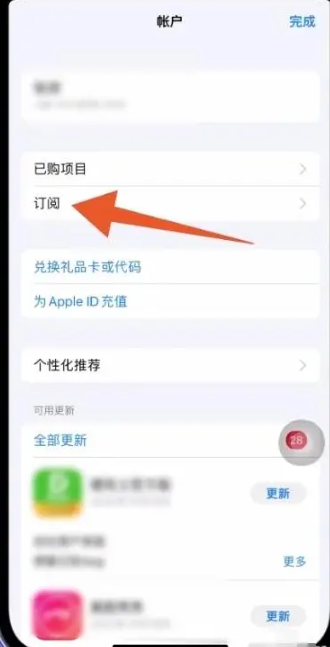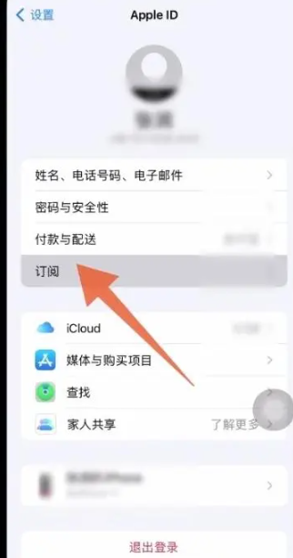 第二步:进入Apple ID页面,点击【订阅】功能,如下图箭头所示;