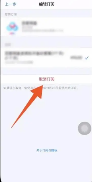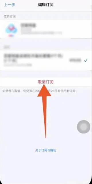 第四步:切换到如下图编辑订阅界面,点击下方【取消订阅】边框;