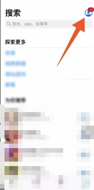 第一步:打开手机上的应用商店,进入首页点击右上角图标;