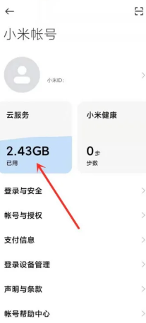 第七步:进入我的小米云服务界面,点击【云相册】图标;