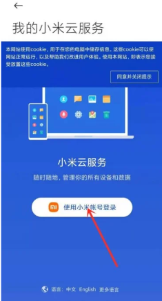 第六步:点击小图中箭头所示的【使用小米账号登录】按钮;