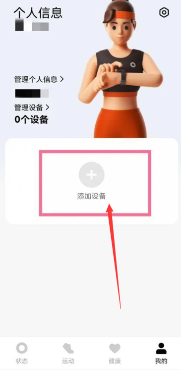 步骤1:打开小米穿戴APP,进入我的界面,点击【+添加设备】,如下图箭头所示;
