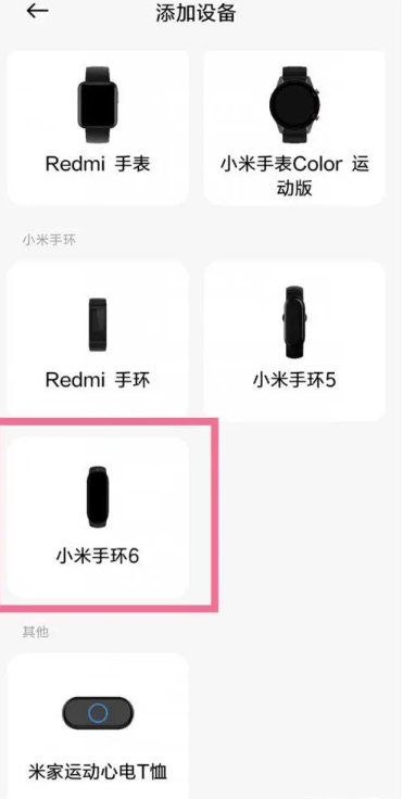 第二步:进入添加设备页面,选择您的手环型号;