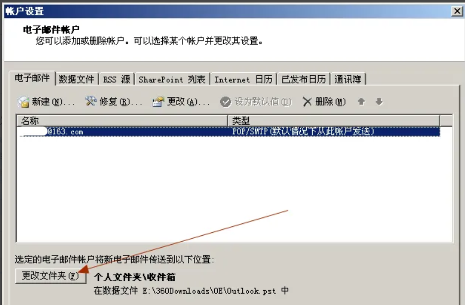 2. 单击左下角的[更改文件夹],然后单击[新建Outlook 数据文件]。