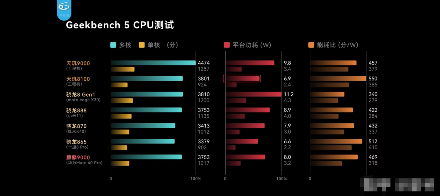 1、从Geekbench 5 CPU测试可以看出,天玑9000和天玑8100的多核跑分分别为4474和3801。与Snapdragon 888和Snapdragon 8 Gen1相比,Dimensity 9000和Dimensity 8100性能更好。尤其是功耗方面,天玑8100的功耗仅为6.9W,接近骁龙865;而天玑9000的功耗为9.8W,比骁龙8 Gen1低1.4W。