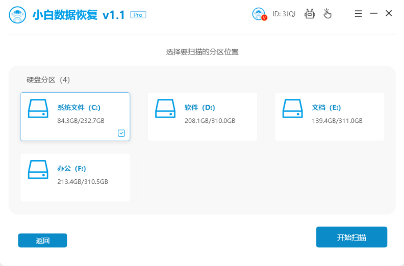 2. 选择需要扫描的磁盘,点击开始扫描。