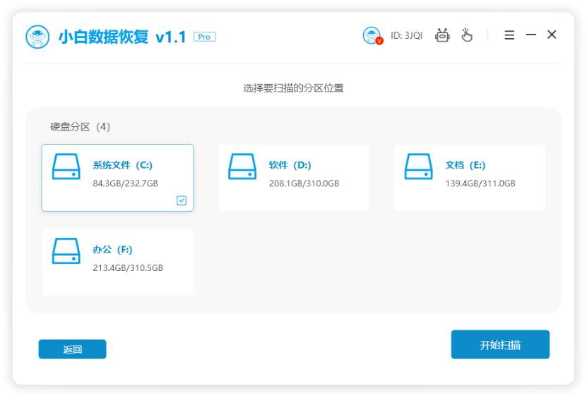 2. 选择需要扫描的磁盘,点击开始扫描。