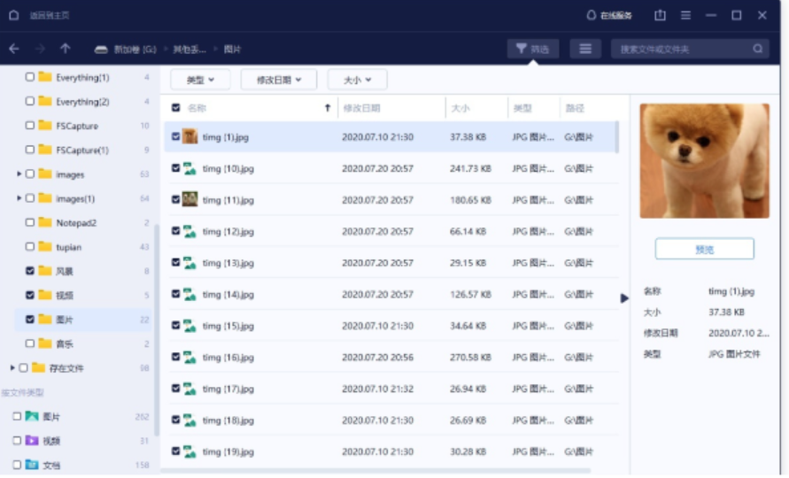 2. 软件需要几分钟的时间来查找已删除的数据,并将找到的结果分类到“已删除的文件”项下。一旦删除的数据出现在结果中,我们将有机会为您找回。