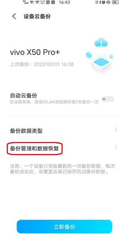 4. 选择并点击“备份管理与数据恢复”,进入恢复页面。