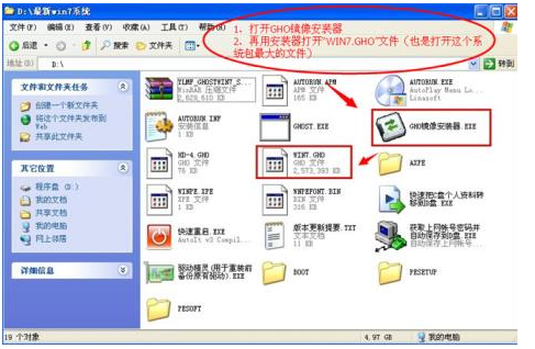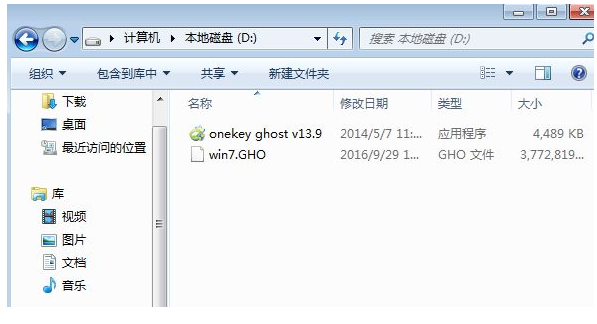 2、将win7.gho文件和Onekey Ghost工具剪切放在同一目录下,比如D盘。注意不要放在C盘或者桌面。