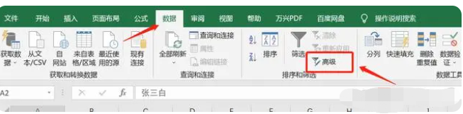 1. 单击工具栏中的【数据】,然后单击过滤排序功能栏中的【高级】。