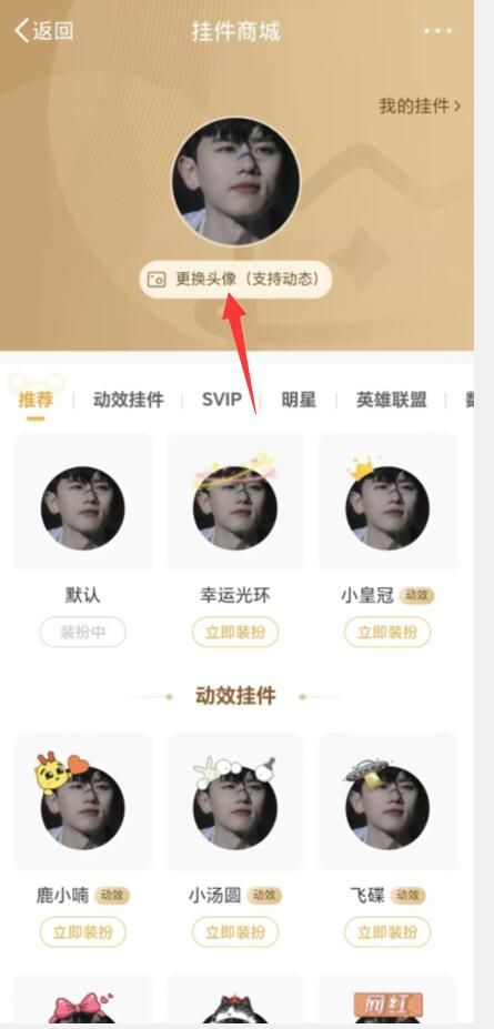 第四步:点击小部件商城头像下方的【更改头像】;