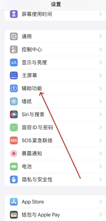 第一步:打开设置功能进入页面,选择【辅助功能】进入;