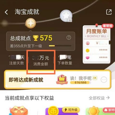 3.可以看到淘宝成就,并且可以查看具体的总消费金额。