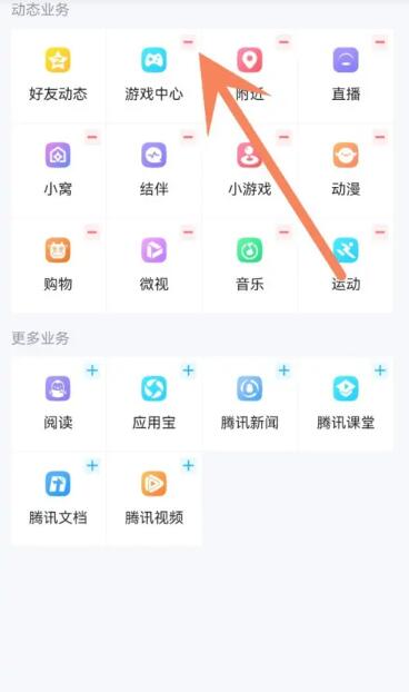 第三步:进入更多页面,点击【游戏中心】图标上方的横线将其关闭。