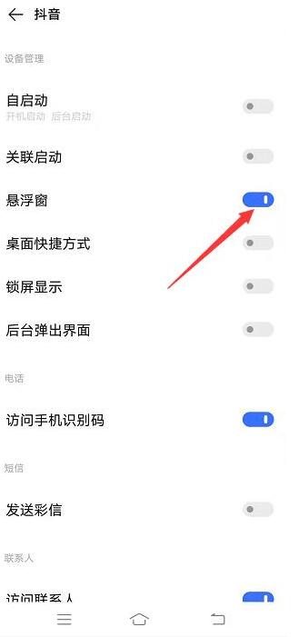 第五步:来到如下图界面,点击【悬浮窗】后面的按钮并滑动。