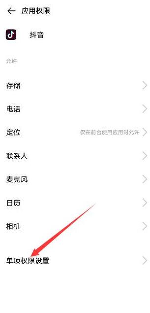 第四步:切换到最新的应用权限页面,选择底部的【单一权限设置】功能;