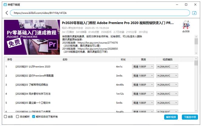 3.您需要先解析视频,然后选择图像质量和编码器进行下载。