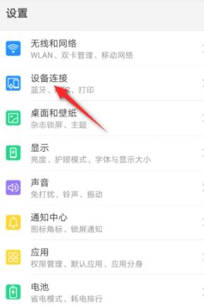第一步:打开华为手机的设置功能,选择【设备连接】功能;