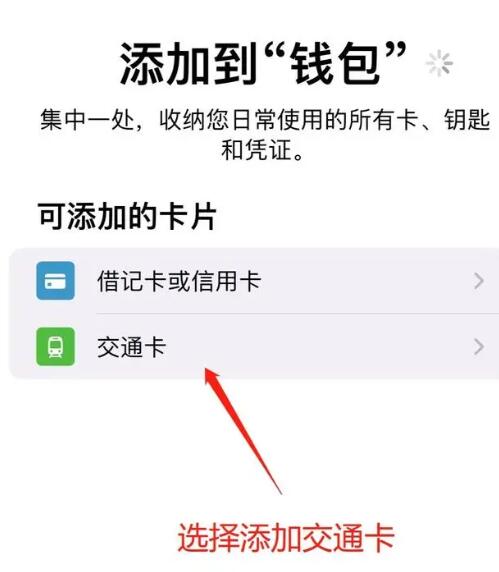 第五步:跳转到最新页面,点击【交通卡】添加;
