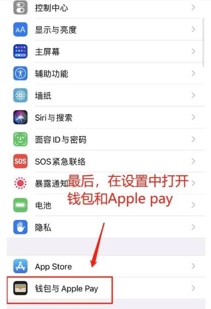 第九步:在设置中找到【钱包和Apple pay】并打开;