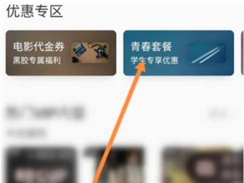 第二步:切换到如下图会员中心,点击【青春套餐】功能框;