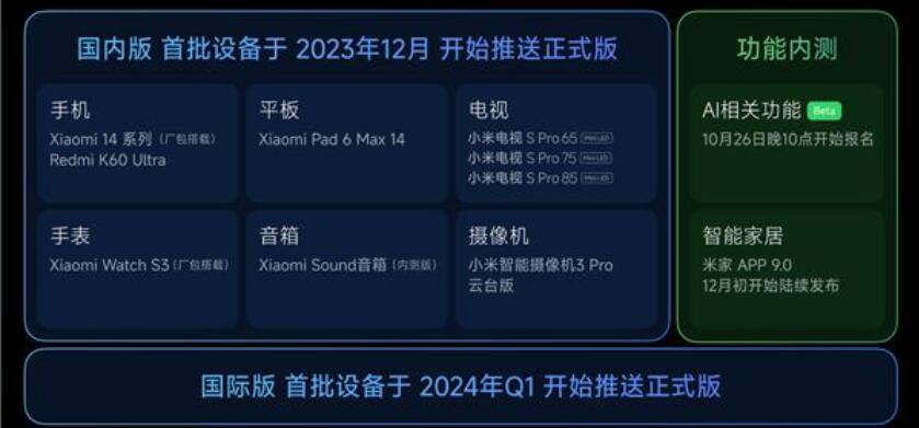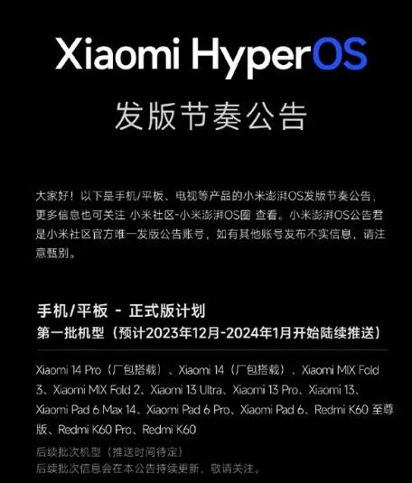 小米Thermal OS系统于10月26日正式公布,很多期待的玩家不知道小米即将推出的Thermal OS系统什么时候才能正式使用。第一批将于2023年12月正式推送至热网os系统,接下来小编为用户带来的关于小米澎湃os正式开始使用的介绍。感兴趣的用户快来看看吧!