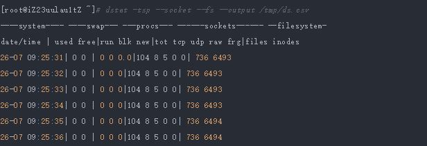 例:dstat --output /root/dstat.csv & 此时让程序默默的在后台运行并把结果输出到 / root/dstat.csv 文件中。