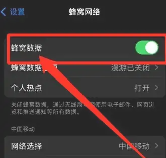 3.最后滑动蜂窝网络界面【蜂窝数据】后面的按钮即可激活。