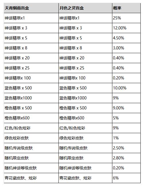1.解锁青烟雨书或月光灵书并达到75级,即可获得随机三款神话皮肤的宝箱。打开宝箱,会看到随机三款Ultimate/Hex限定皮肤(未拥有者优先,发售日期1年以内的皮肤不计入奖池),召唤者可以选择一个接收;