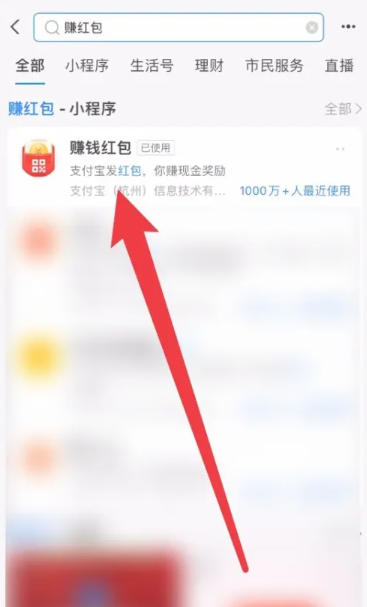 2、然后在搜索框中输入【赚取红包】,点击下方的【赚取红包】小程序;