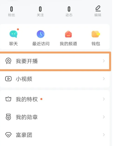 2、然后进入个人中心页面,点击【我要开始直播】服务;