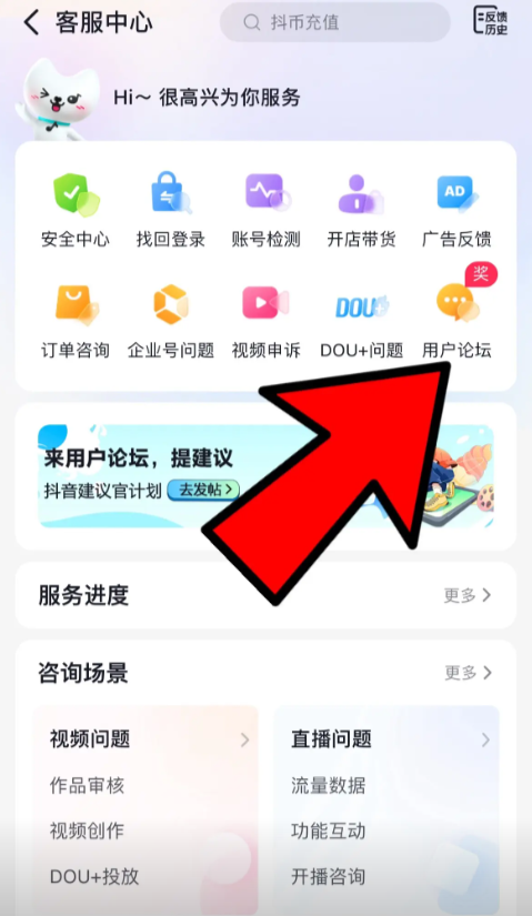3、然后在客户服务中心界面,选择【用户论坛】;