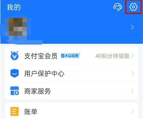 1、首先打开支付宝APP,进入主界面右下角的【我的】区域,点击右上角的【设置】功能;