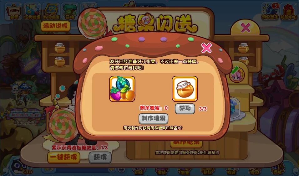 如果你想制作糖果,小岩石们需要挑战晨兴蜜蜂以获得蜂蜜。至于水果,波仔已经准备好了。让小石头们来战斗吧!每日挑战次数上限为3次。逃脱/失败不会影响活动的完成。