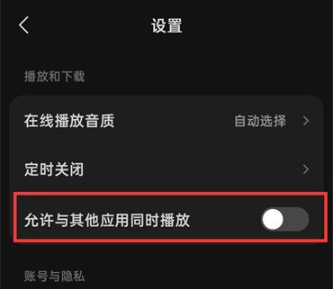 3、然后跳转到设置功能界面,滑动【允许与其他应用程序同时播放】后面的按钮即可完成设置。