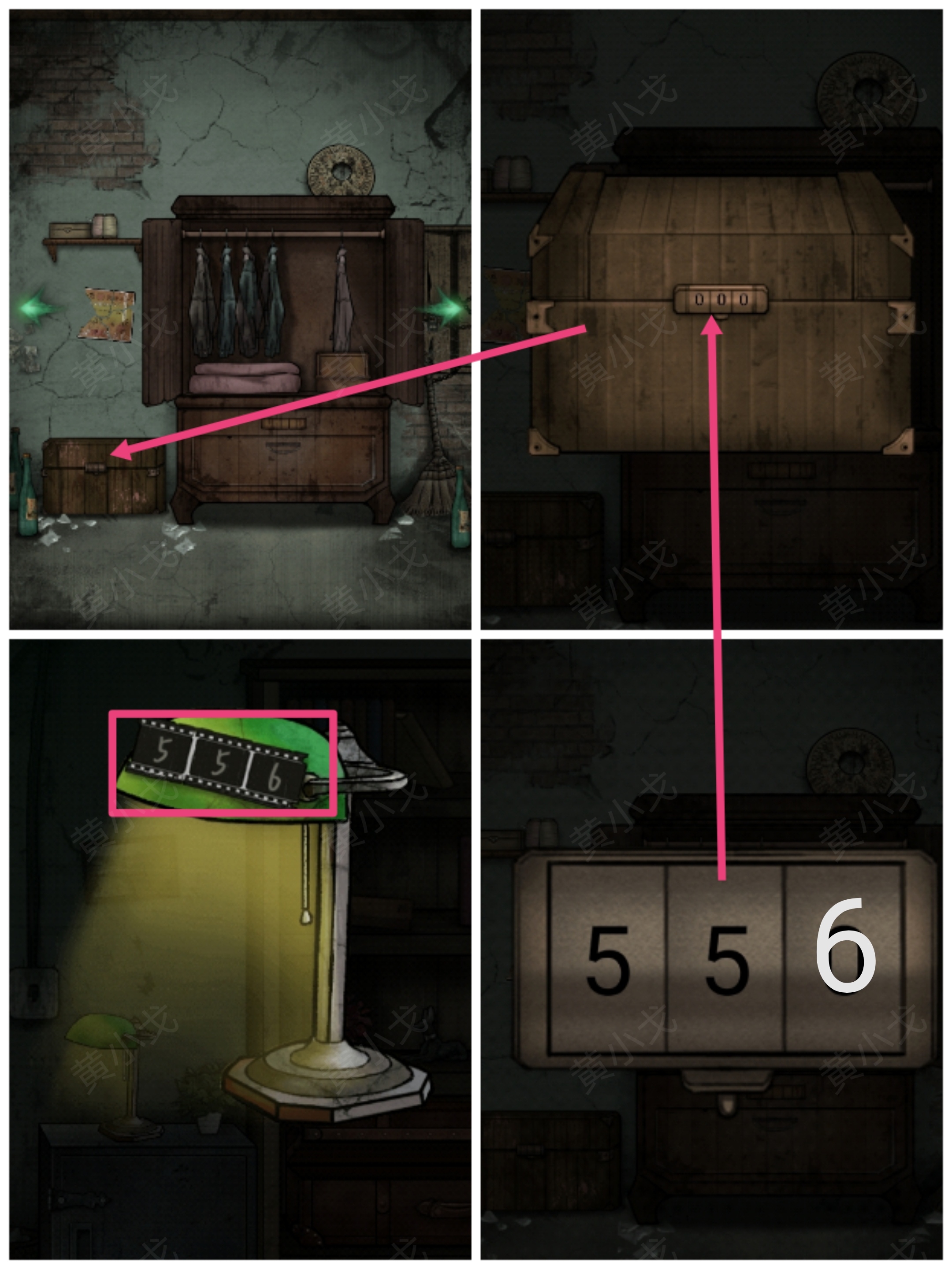 19、点击方框上的密码锁,根据片上提示输入密码:556
