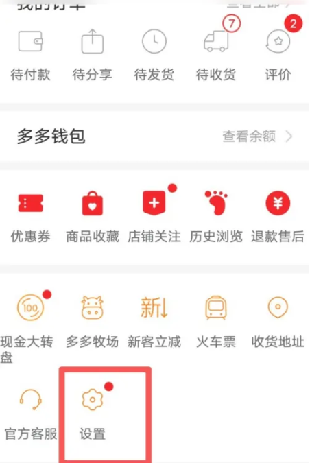 1、首先打开拼多多APP,点击主页面右下角的【我的】功能进入,选择【设置】功能;
