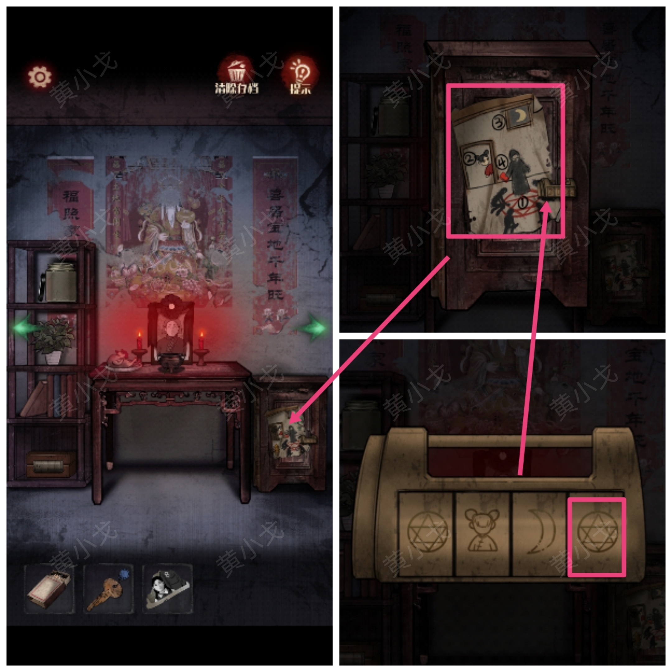 11.(供桌上)点击桌上的香炉,插入【一把香】;用[火柴盒]中的火柴点燃它,并得到线索(583)