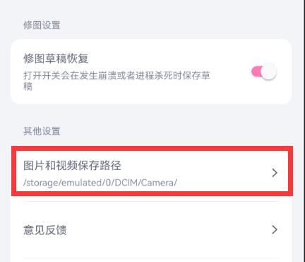 3. 向下滑动即可看到图片和视频的保存路径,找到保存位置。