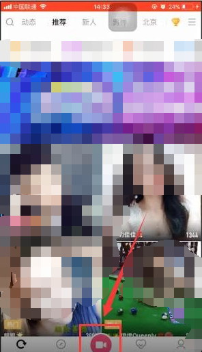 1、首先打开花椒直播APP,点击主页面下方的【直播】图标;