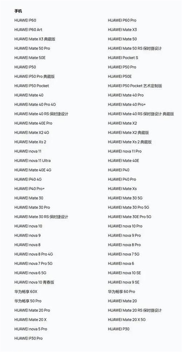 型号:HUAWEI P60、HUAWEI P60 Pro、HUAWEI P60 Art、HUAWEI Mate X3等