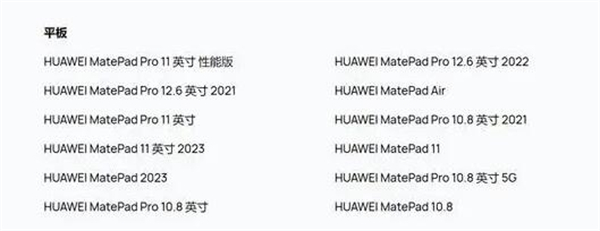 型号:HUAWEI MatePad Pro 11英寸性能版、HUAWEI MatePad Pro 12.6英寸2022年、HUAWEI MatePad Pro 12.6英寸2021年、HUAWEI MatePad Air等