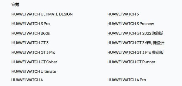 型号:HUAWEI WATCH 4、HUAWEI WATCH 4 Pro、HUAWEI WATCH ULTIMATE DESIGN、HUAWEI WATCH 3 等