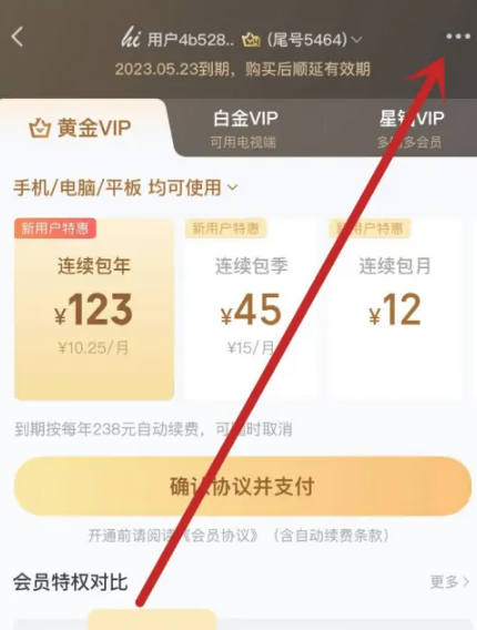 2、然后跳转到会员中心,使用右上角的三点图标功能;