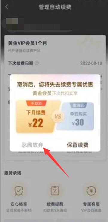 第四步:进入自动续费管理界面,找到【取消自动续费】边框并点击;